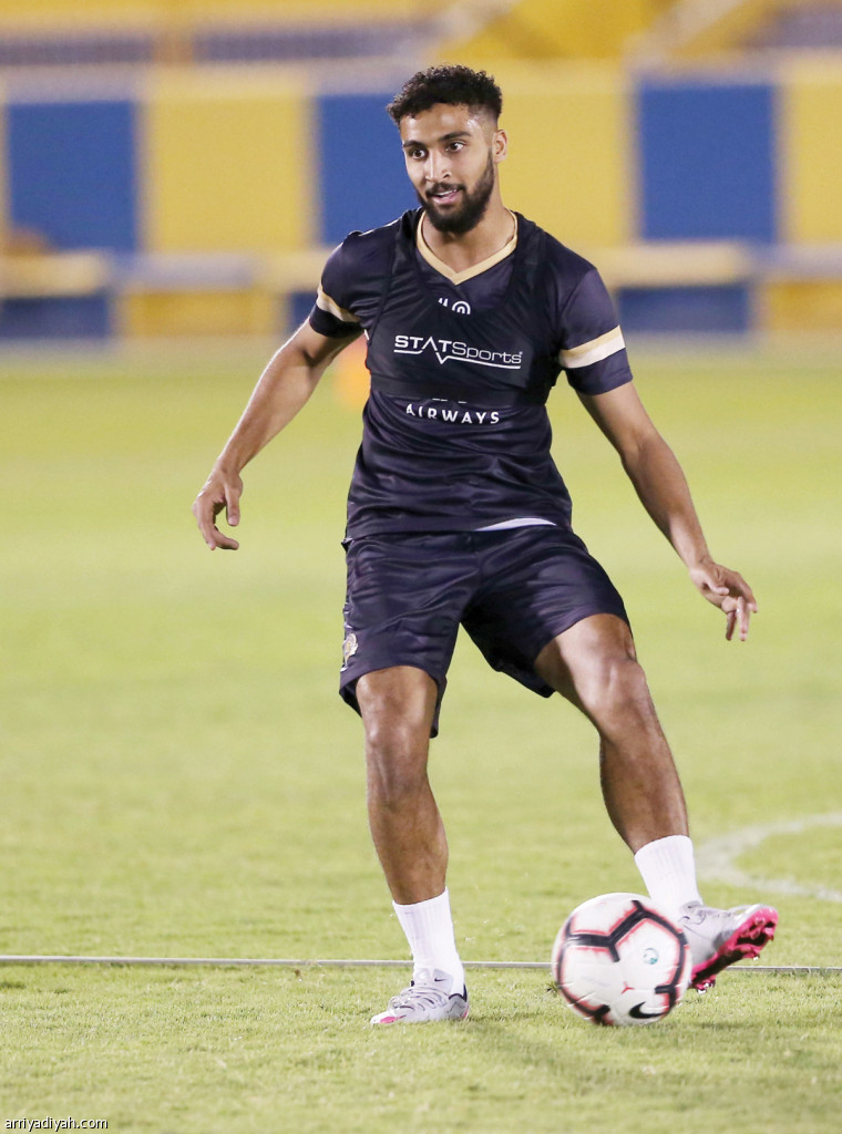 صورة التقطت أمس لعبدالرحمن العبيد مدافع فريق النصر خلال مشاركته في التدريبات الجماعية بعد عودته من الإصابة (المركز الإعلامي ـ النصر)