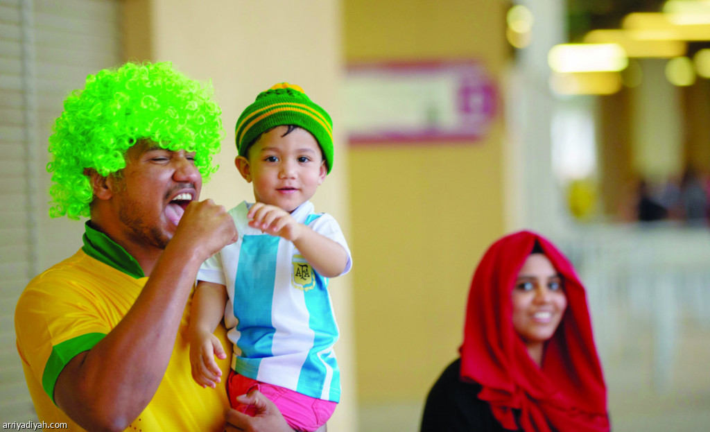 صورة التقطت أمس للمشجع وابنه في تحدٍ قبل المباراة تصوير: محمد المانع