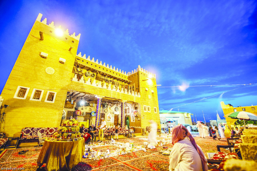 ويجلس الزوار ابتداء في مدخل القلعة، لمتابعة محتوياته وسط الهواء الطلق وتناول أطعمة ومشروبات تقليدية.