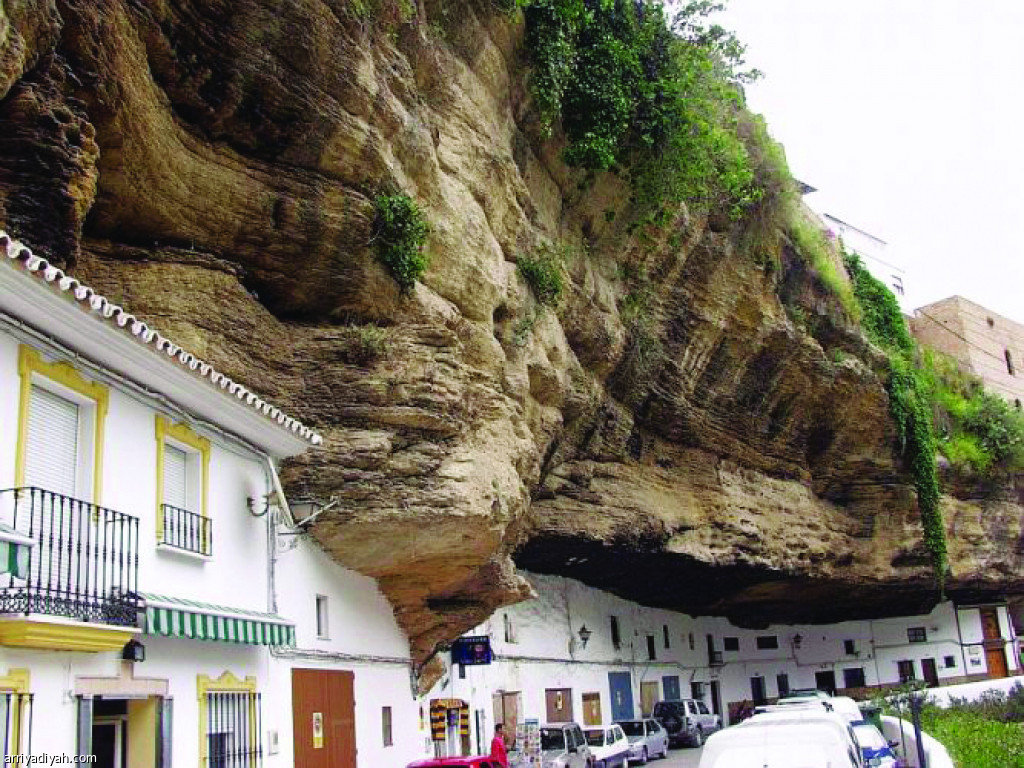 صورة التقطت لمنازل تحت الصخور في بلدة سيتينيل دي لاس بوديجاس (صور جيتي)