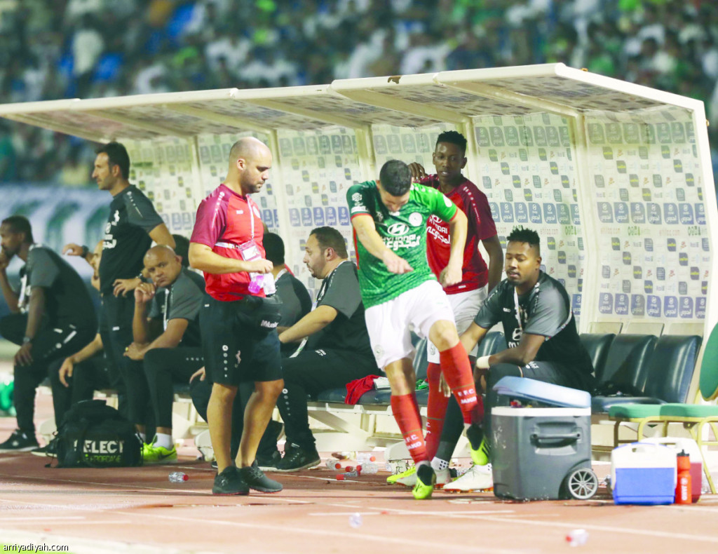 قدم الأرجنتيني كريستيان لاعب الاتفاق أمس أداءً جيدًا أمام الأهلي وأحرز الهدف الثاني لفريقه بتسديدة قوية من داخل منطقة الجزاء قبل أن يخرج مصابًا.. ويظهر جوانكا في الصورة التي التقطت أمس غاضبًا عقب استبداله من قبل المدرب تصوير: عيسى الدبيسي