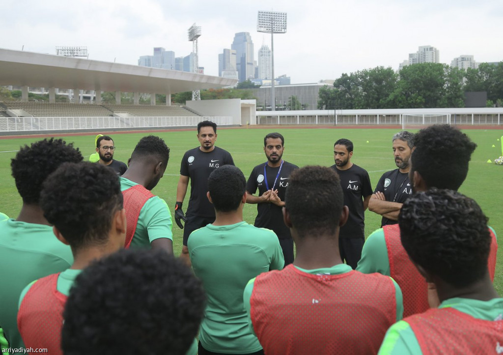 وشهدت الحصة التدريبية تقسيم اللاعبين إلى مجموعتين، أدت المجموعة الأولى والتي شاركت بصفة أساسية في مواجهة منتخب ماليزيا والتي انتهت بنتيجة 2-1 لصالح الأخضر الشاب مرانًا استشفائيًا، في حين أجرت المجموعة الثانية مرانًا على الضغط العكسي، أعقبه مران في جمل تكتيكية هجومية.