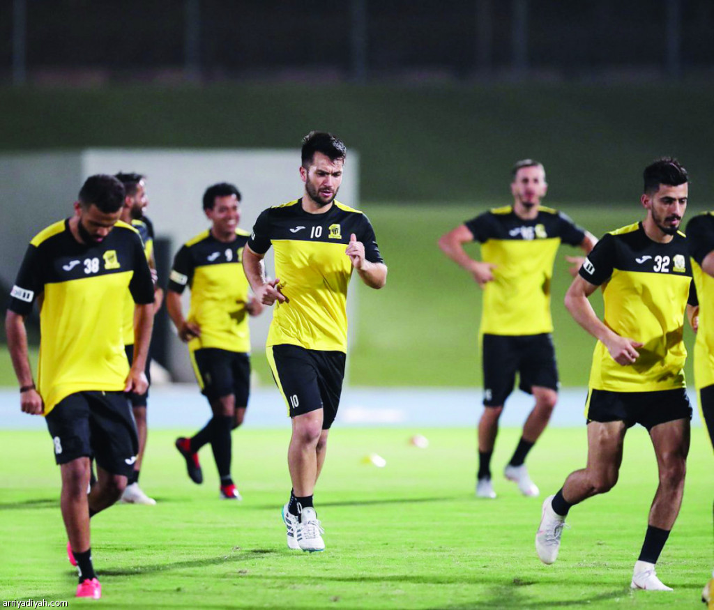 صورة التقطت أمس من تدريبات الاتحاد استعدادًا للكلاسيكو أمام الهلال (المركز الإعلامي ـ الاتحاد)