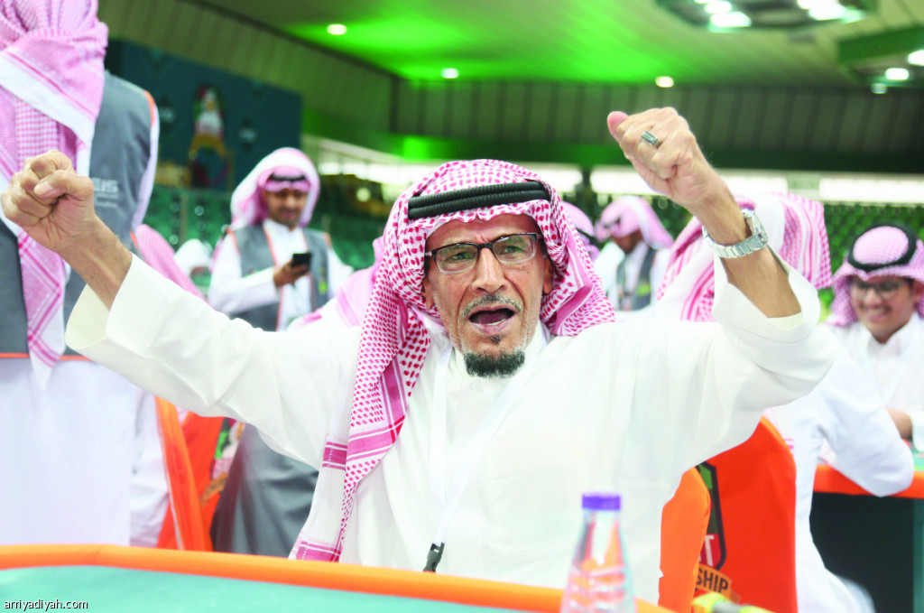 صورة التقطت أمس لكايد المحيني يعبر عن فرحته بطريقته الخاصة بعد تأهله إلى التصفيات النهائية في بطولة المملكة الثانية للبلوت على كأس الهيئة العامة للرياضة تصوير: يزيد السمراني