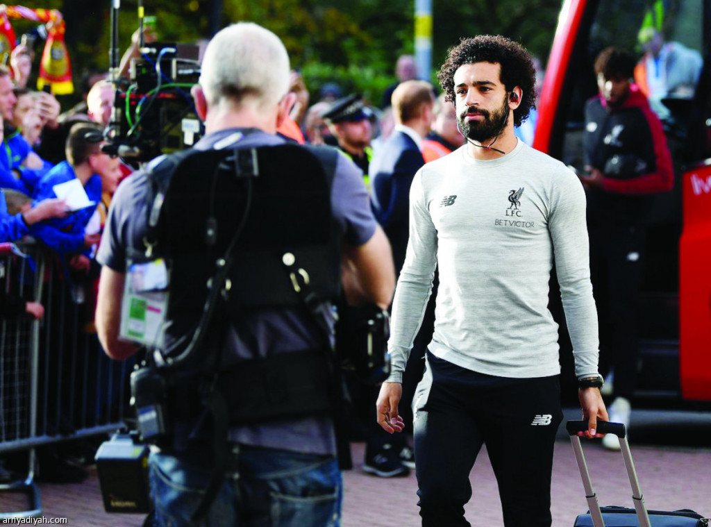 صورة التقطت أمس لمحمد صلاح في طريقه إلى تدريبات فريقه ليفربول الذي يستعد للقاء النجم الأحمر (المركز الإعلامي ـ ليفربول)