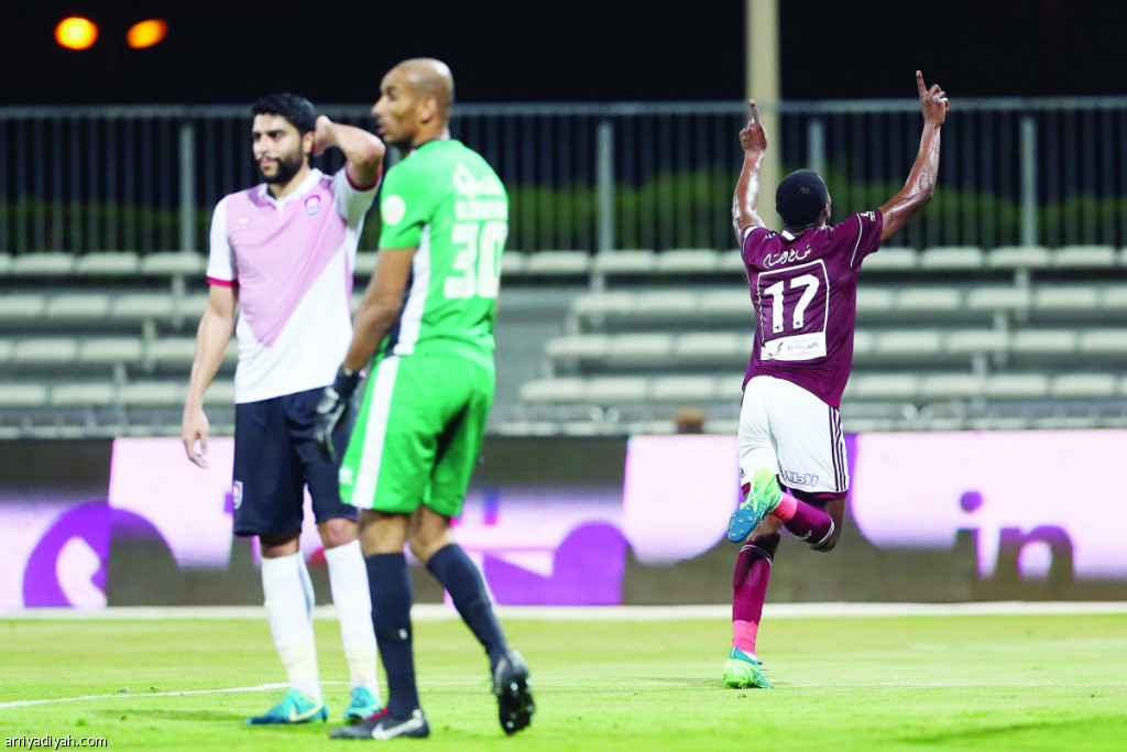 وضع فريق الفيصلي الأول لكرة القدم حدًا لسلسلة هزائمه التي استمرت طوال مبارياته الثلاث الماضية في دوري كأس محمد بن سلمان للمحترفين.. عقب أن قاده النيجيري جوزيف أكبالا إلى الانتصار على الرائد في الجولة السابعة أمس الأربعاء 2ـ0 تصوير: عبد العزيز النومان