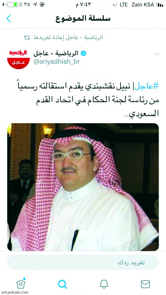 وتصدرت تغريدة خبر استقالة نبيل نقشبندي من منصبه رئيسًا للجنة الحكام بالرقم الأعلى، حيث وصلت إلى نحو 500 ألف مشاهد وزائر للحساب خلال 6 ساعات من بثها.