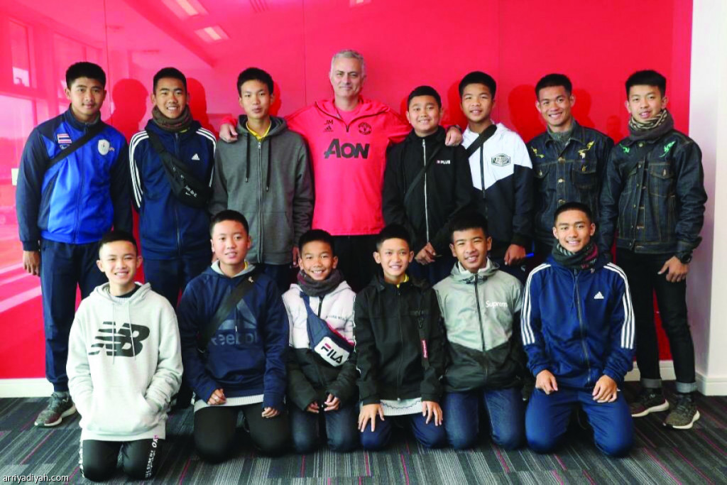 تداول المغردون مساء أمس في منصات التواصل الاجتماعي صورة من زيارة الأطفال التايلانديين الذين احتجزتهم المياه في تايلاند قبل أشهر لنادي مان يونايتد الإنجليزي والتقاط الصور التذكارية مع مدربه البرتغالي جوزيه مورينيو، إضافة إلى حضورهم مباراة اليونايتد وإيفرتون ضمن منافسات البريميرليج.