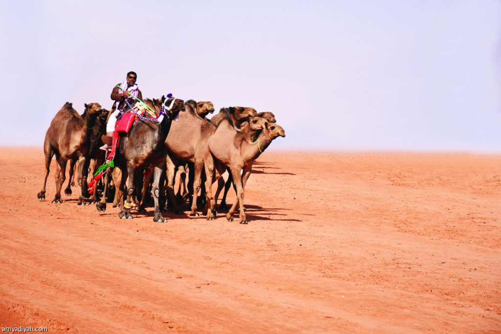 مبارك بن فهيد العاوي مع إبله يمتطي الرحول
