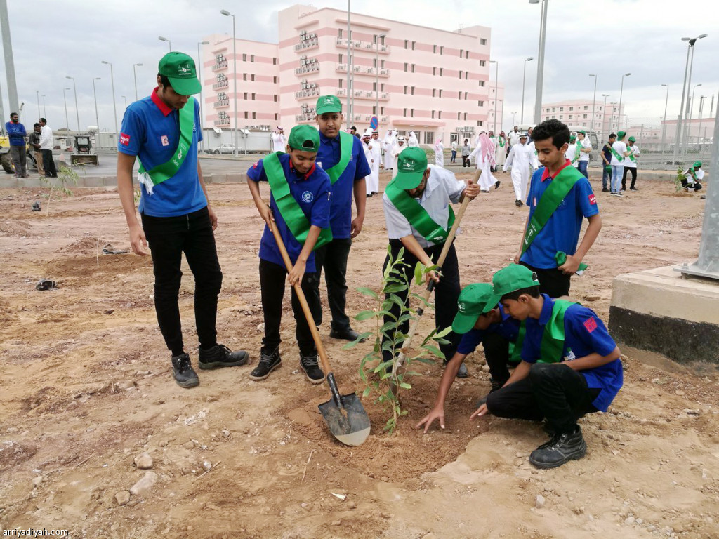 صورة التقطت أمس لمتطوعين أثناء المشاركة في التشجير