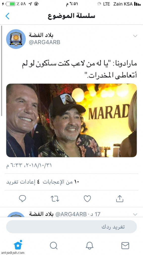 تناقلت الجماهير الرياضية، عبر موقع التواصل الاجتماعي “تويتر”، مساء أمس، تصريحات دييجو مارادونا أسطورة كرة القدم عبر التاريخ، وقال نجم الأرجنتين وقائدها السابق: إن المخدرات دمرت مسيرتي الكروية، ولذلك لم تكن لديه استمرارية.