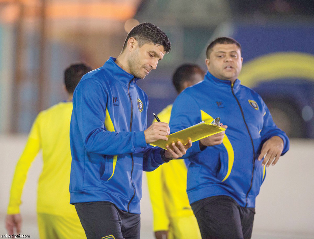 صورة التقطت أمس للبرتغالي مانويل مدرب التعاون يجهز خطته قبل انطلاق التدريبات (المركز الإعلامي ـ التعاون)