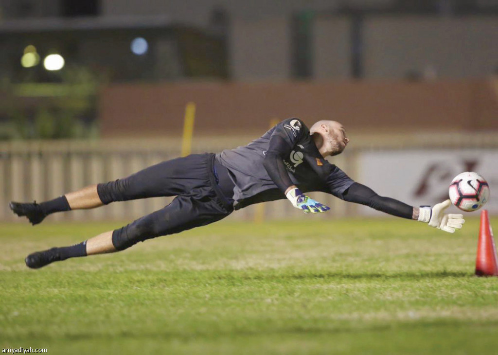 صورة التقطت أمس للأسترالي دونكان حارس مرمى القادسية خلال التدريبات استعدادًا للقاء الأهلي ضمن الجولة التاسعة من الدوري (المركز الإعلامي ـ القادسية)