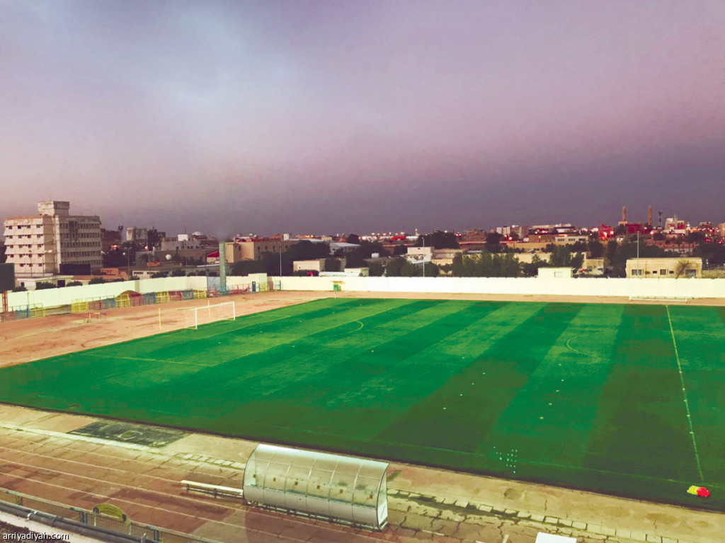 صورة التقطت أمس لملعب الحزم بعد نهاية زراعة أرضيته بالعشب الطبيعي تصوير: فهد البطاح