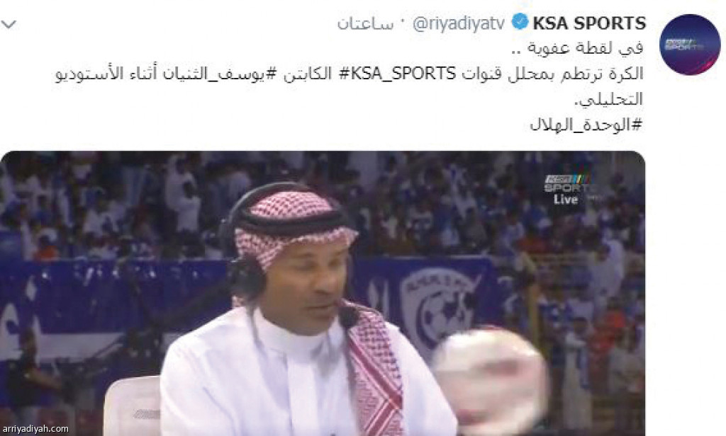 شهد فيديو يوسف الثنيان لاعب فريق الهلال السابق لكرة القدم نحو أكثر من نصف مليون بعد أن ارتطمت به الكرة وهو يحلل مواجهة فريقه السابق على الهواء مباشرة، وكان الأكثر انتشاراً في الهاشتاق. يذكر أن الثنيان امتدح أداء فريقه في المواجهة ووصفه بالمميز والممتع.