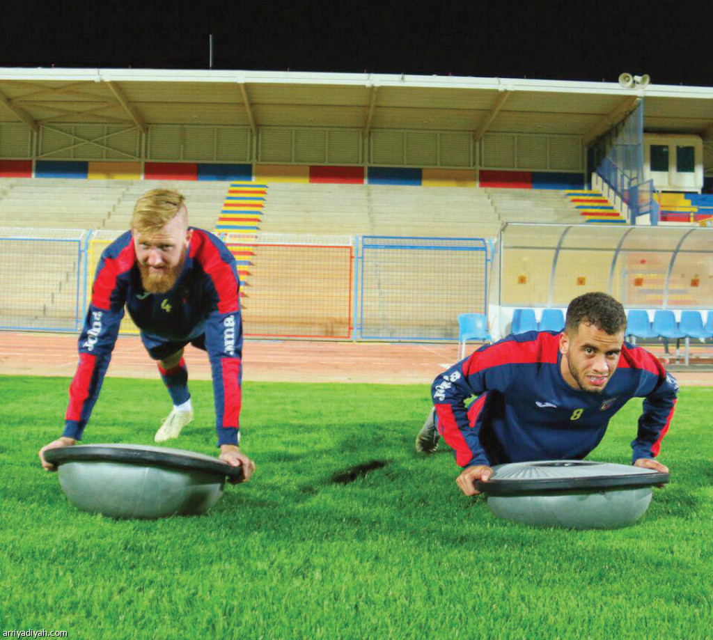 استأنف فريق الحزم الأول لكرة القدم تدريباته اليومية على ملعبه الرئيس بعد تمتع اللاعبين بإجازة لمدة 3 أيام عقب التعادل مع أحد في الجولة التاسعة.. حيث تقرر أن يخوض الفريق مباراة ودية أمام التعاون الجمعة المقبل.. وفي الصورة التي التقطت أمس يظهر البرازيليان ألميدا وأليماو خلال التدريبات اللياقية (المركز الإعلامي ـ الحزم)
