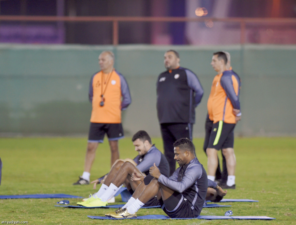 وبدأ المدرب تدريباته بتمارين إحماء وتسخين ولياقية مكثفة بقيادة مدرب اللياقة ماركال الذي أخضع اللاعبين إلى تمارين اللف حول الملعب، وتخطي الحواجز وتقوية العضلات، عقب ذلك قسم المدرب الفريق إلى ثلاث مجموعات طبق من خلالها اللاعبون تدريبات فنية وتكتيكية تمثلت في التحكم بالكرة، والتمرير السريع من لمسة واحدة، والضغط على حامل الكرة. واختتمت التدريبات بتمارين إطالة وتفكيك عضلات.