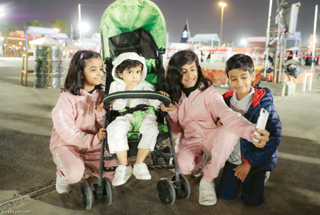 صورة التقطت أمس الأول لمجموعة من الأطفال يأخذون “سيلفي” في مهرجان الخريف تصوير: بشير صالح