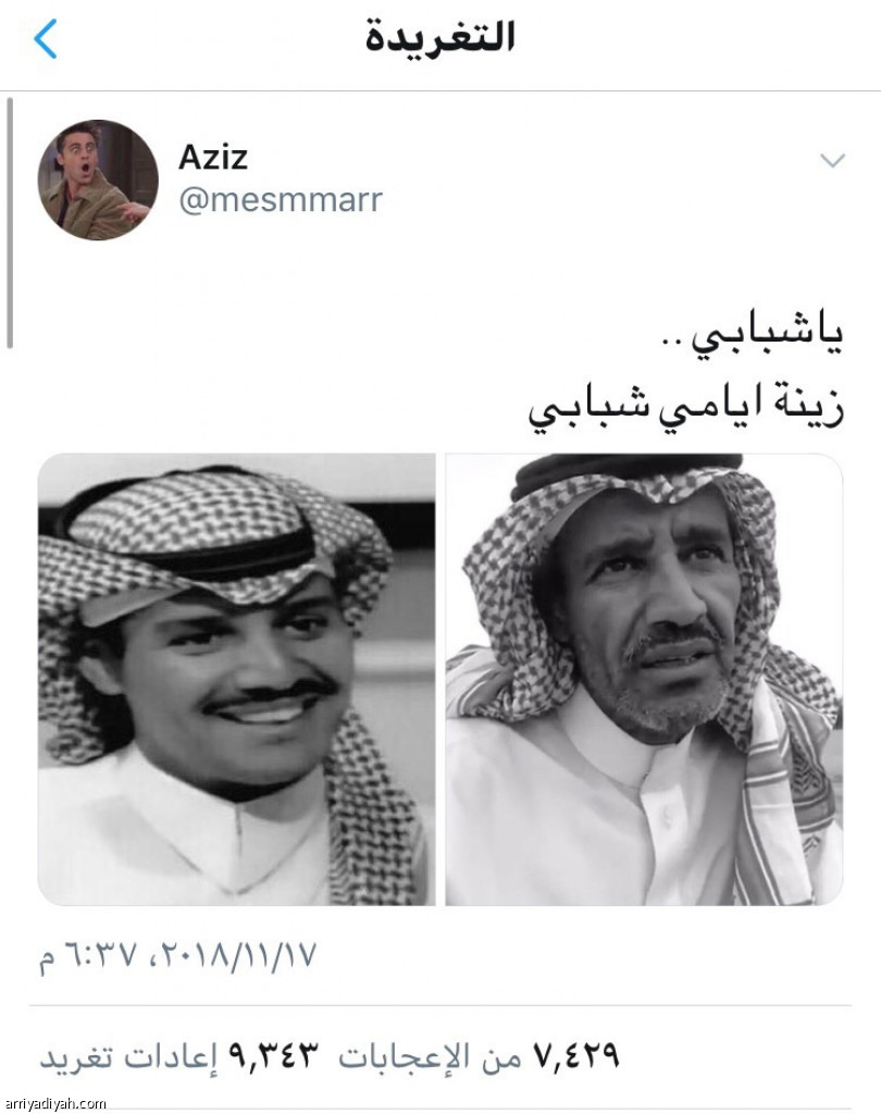 يا شبابي.. زينة أيامي شبابي هكذا عنون محبو الفنان الكبير خالد عبدالرحمن على الصورتين الشخصيتين اللتين حصدتا نحو 323.297 تداولاً في منصات التواصل الاجتماعي.