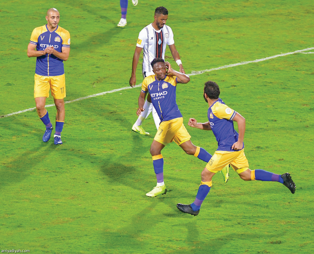 سدد النيجيري أحمد موسى مهاجم فريق النصر الأول لكرة القدم أكثر من كرة على مرمى الشباب طيلة مجريات الشوط الأول، ولم يوفق إلا في الكرة الرابعة التي سكنت شباك التونسي فاروق بن مصطفى حارس الفريق الشبابي عند الدقيقة 35.