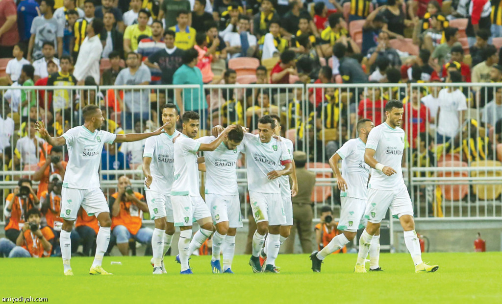 صورة التقطت أمس من فرحة لاعبي الأهلي بالهدف الثاني الذي أحرزه عبد الفتاح عسيري في شباك الاتحاد تصوير: محمد المانع