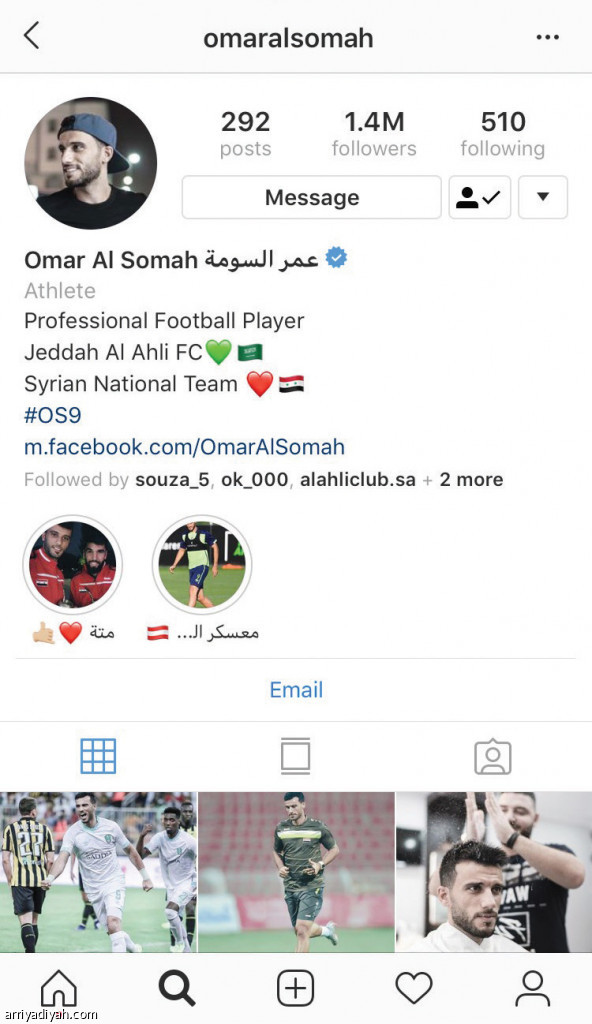 ويتصدر عمر السومة قائمة أكثر لاعبي الأهلي متابعة بمليون و400 ألف، ويسجل تفاعلاً كبيرًا مع متابعيه.