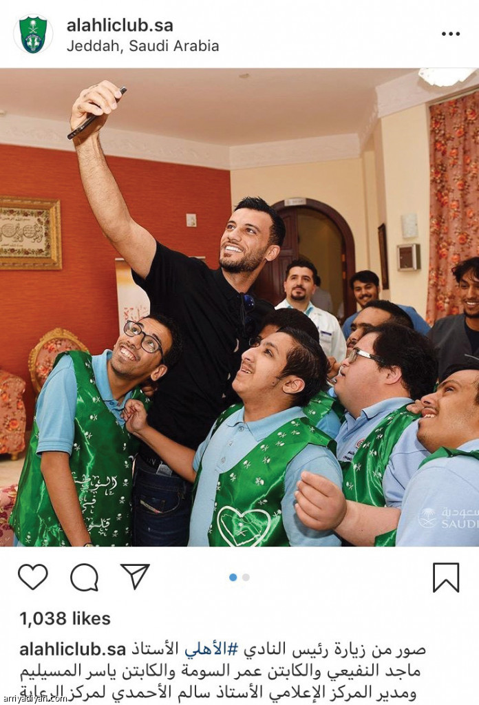 بث الحساب الرسمي لنادي الأهلي، عبر موقع التواصل الاجتماعي “إنستجرام”، صورًا من زيارة ماجد النفيعي، رئيس النادي، والثنائي عمر السومة وياسر المسيليم، لاعبي الفريق الأول لكرة القدم، مركز الرعاية في جدة، مساء أمس، ضمن إطار الدور الاجتماعي للنادي الغربي، وشهدت الصور نحو 1038 معجبًا خلال ساعة واحدة من بثها.