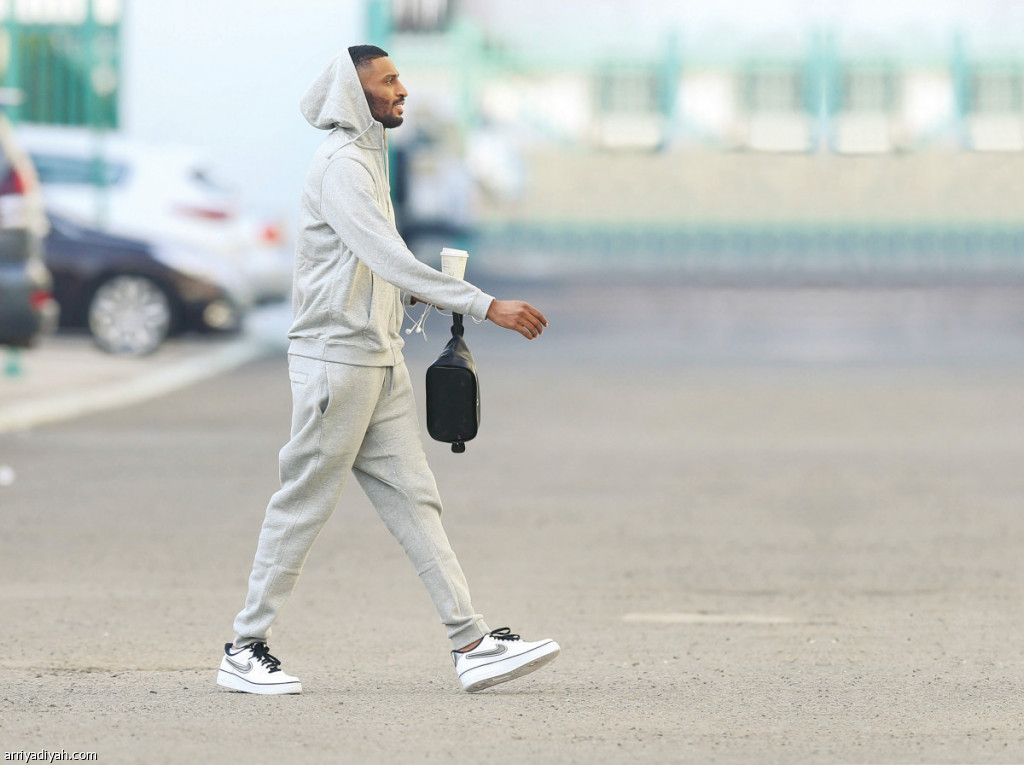 صورة التقطت أمس لمهند عسيري يتجه إلى الملعب لأداء التدريبات الجماعية مع زملائه تصوير: عبد الوهاب خبتي