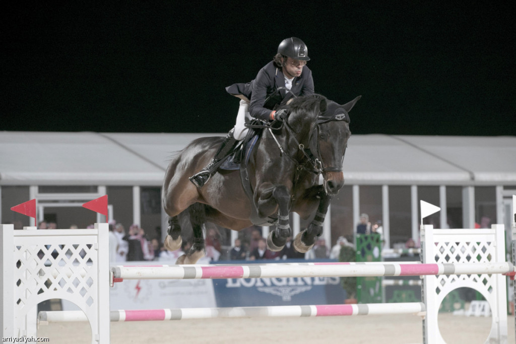 صورة التقطت لأحد الفرسان يؤدي عرضه أمس في بطولة الدرعية تصوير: فهد المري