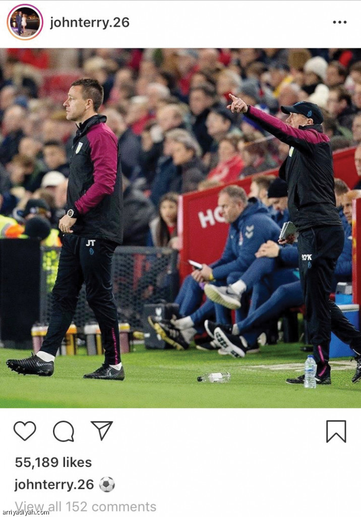 نشر الإنجليزي جون تيري، مساعد فريق أستون فيلا الإنجليزي لكرة القدم، عبر حسابه الرسمي في موقع التواصل الاجتماعي إنستجرام”، صورة له وهو موجود على دكة البدلاء خلال مباراة فريقه أمس، ووصل عدد الإعجاب إلى نحو 55 ألفا خلال ثلاث ساعات من بثها.