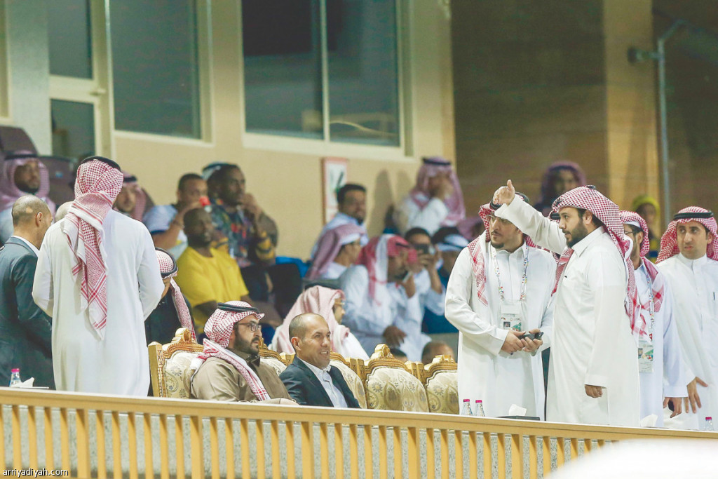صورة التقطت أمس لليوناردو جارديم، المدرب البرتغالي، جالسًا في مقصورة ملعب الأمير فيصل بن فهد إلى جوار سعود السويلم، رئيس نادي النصر، لمتابعة مباراة الفريق الأصفر والوحدة ضمن الجولة الـ 11 من دوري كأس محمد بن سلمان للمحترفين للتعرف على الفريق عن قرب قبل اتخاذ قرار تولي تدريبه من عدمه تصوير: بدر الحمد