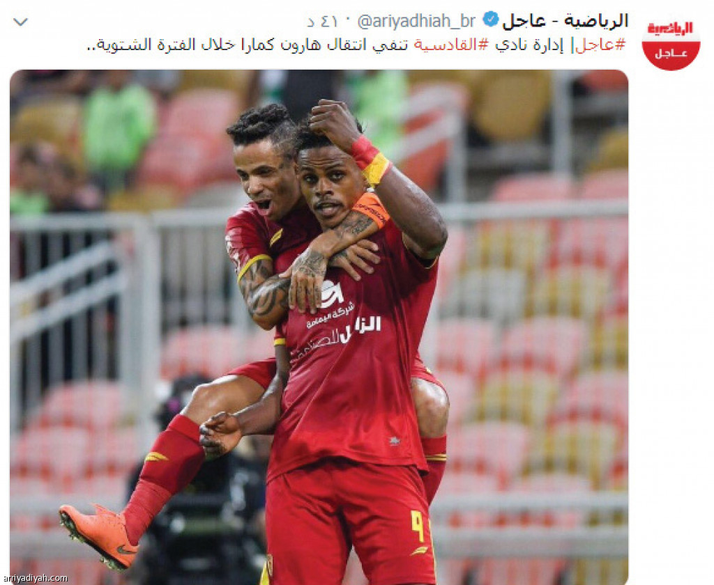 وغرد حساب “الرياضية عاجل” بخبر نفي إدارة القادسية انتقال هارون كمارا خلال الفترة الشتوية، وشهدت التغريدة تفاعلًا كبيرًا من قبل المغردين خلال نصف الساعة الأولى من انتشارها، حيث حصلت على 47 ردًّا، و117 عملية إعادة تغريد، و81 عملية تفضيل.