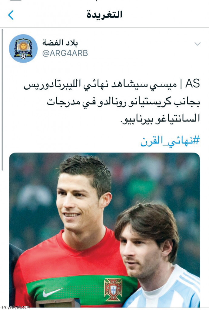 بث حساب بلاد الفضة، عبر موقع التواصل الاجتماعي “تويتر”، المهتم بنقل أخبار الكرة الأرجنتينية في الطائر الأزرق، خبر وجود الثنائي كريستيانو رونالدو وميسي في ملعب السنتياجو لحضور نهائي القرن بين ريفر بليت وبوكا جونيورز الأرجنتينيين خلال الأيام المقبلة، وشهد الخبر انتشارًا واسعًا من الجماهير الرياضية العربية.