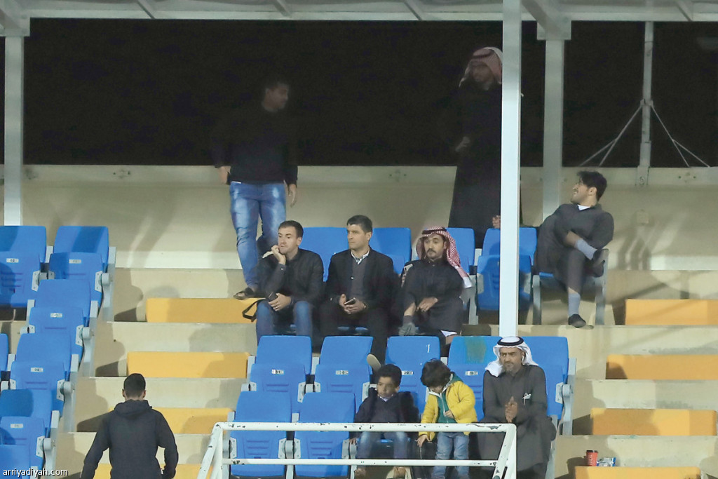 صورة التقطت أمس لبيدرو إيمانويل مدرب التعاون يرصد فريق الرائد في مباراته أمام الأهلي قبل مواجهتهما المرتقبة في ديربي القصيم