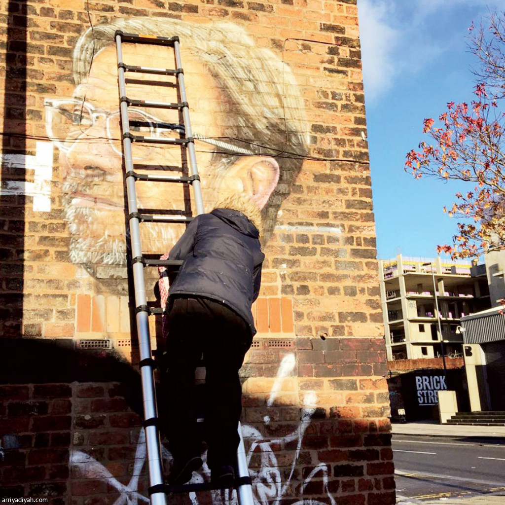 صورة التقطت لرسم جرافيتي للألماني يورجن كلوب، مدرب نادي ليفربول الإنجليزي، على جدار إحدى البنايات في مدينة ليفربول (المركز الإعلامي ـ ليفربول)