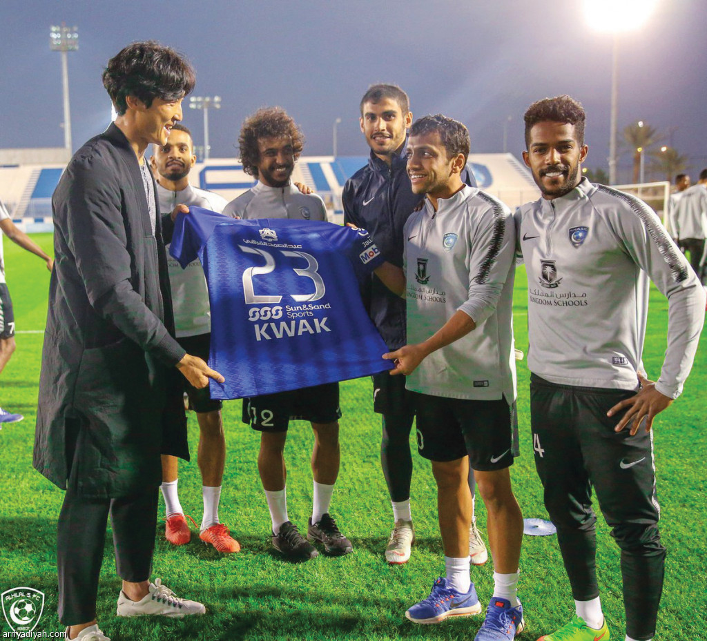 زار الكوري كواك تاي هي لاعب فريق الهلال الأول لكرة القدم السابق مقر النادي في الرياض العاصمة السعودية أمس واستعاد ذكرياته مع زملائه السابقين متمنيًا لهم التوفيق.. وفي الصورة التي التقطت أمس يظهر كواك ومحمد الشلهوب قائد الفريق الأزرق يستعرضان قميصًا هلاليًا يحمل اسمه.. وحولهما نواف العابد ومحمد الواكد وياسر الشهراني ومحمد البريك (المركز الإعلامي ـ الهلال)