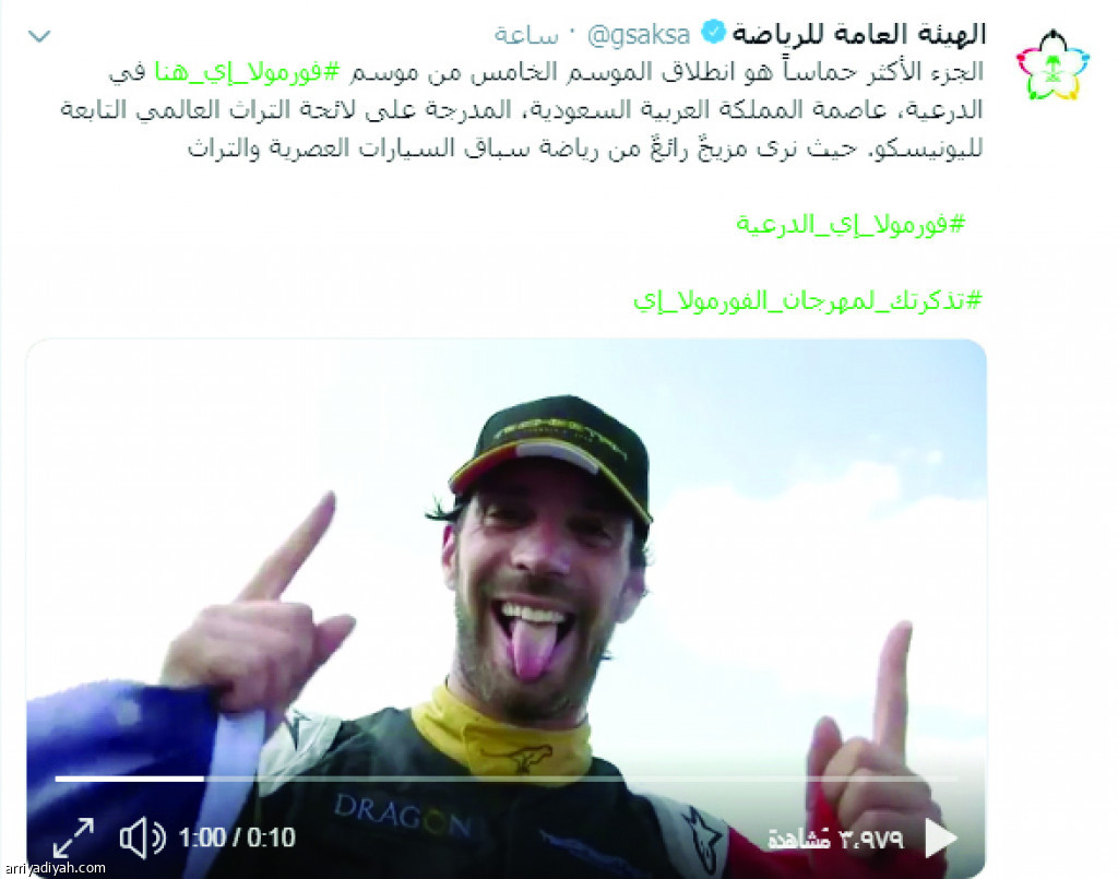 شاهد نحو 4 آلاف مستخدم لموقع التواصل الاجتماعي "تويتر"، مقطع فيديو نشره الحساب الرسمي للهيئة العامة للرياضة، وسمّاه بـ"الجزء الأكثر حماسا".