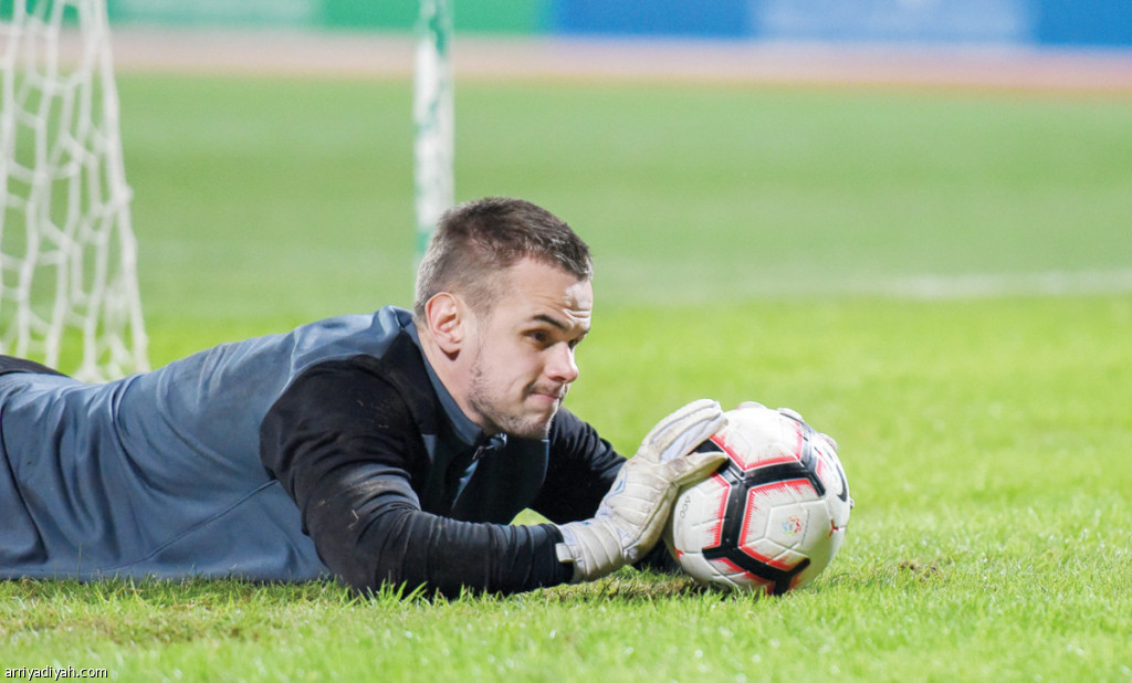 صورة التقطت أمس للأوكراني ماكسيم حارس مرمى فريق الفتح أثناء تدريبات الحراس (المركز الإعلامي ـ الفتح)
