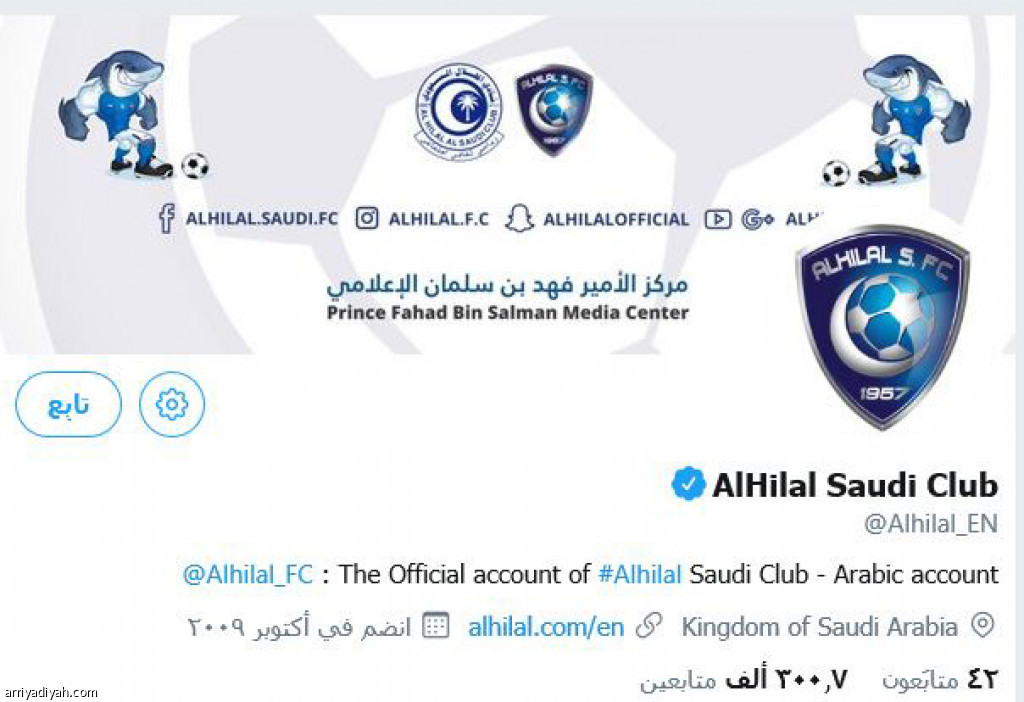 وبمثل ما تصدر الهلال الأندية السعودية في عدد متابعيه في "تويتر"، باللغة العربية، فقد تصدر أيضاً بالأكثر متابعة في حسابه باللغة الإنجليزية بـ 301 ألف متابع، يليه النصر في المركز الثاني بـ 169 ألف متابع، وحل الأهلي ثالثاً بـ 75 ألفاً، والاتحاد رابعاً بـ 53 ألف متابع، والشباب خامساً بـ 13 ألفاً، بينما لم تهتم بقية الأندية بتدشين حسابات بالإنجليزية.