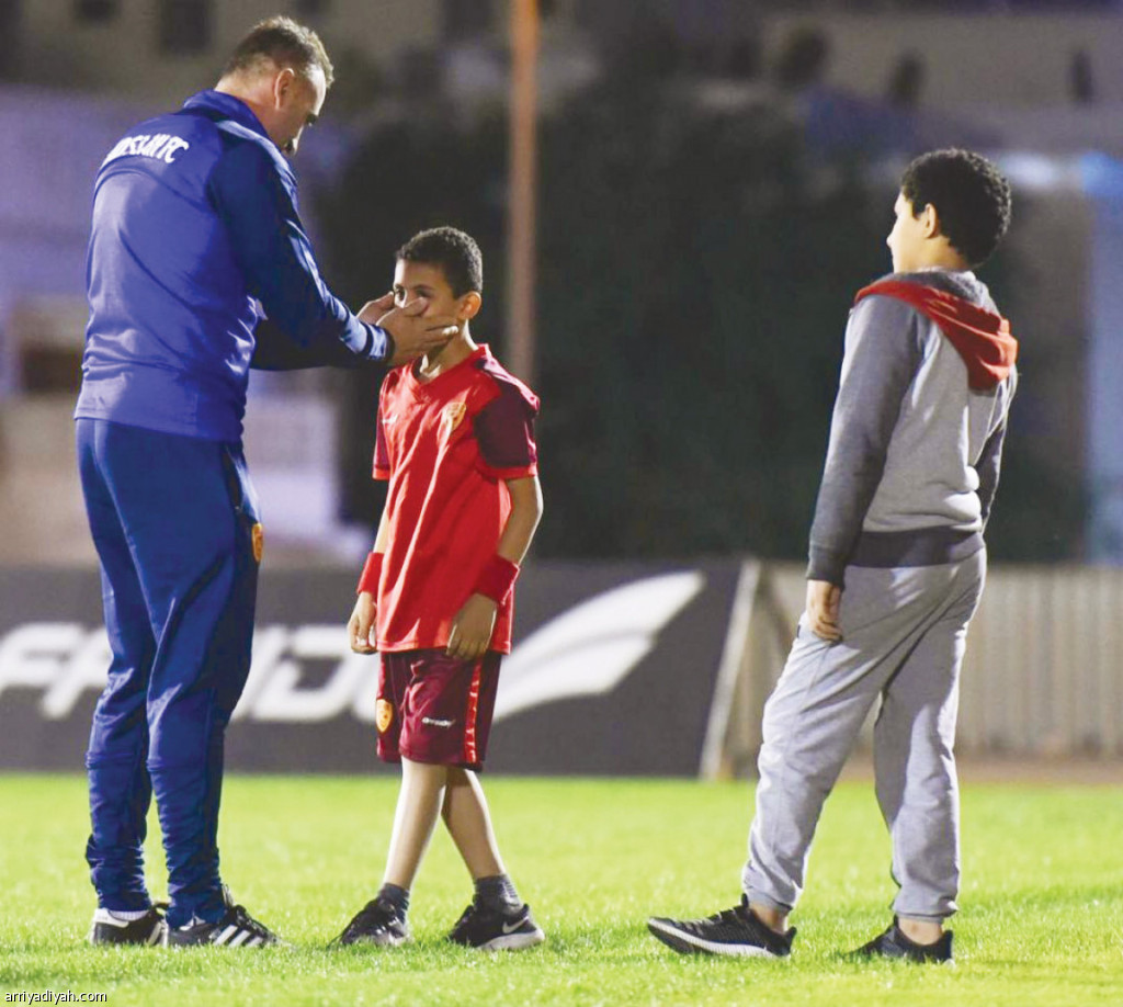 أوفى البلغاري إيفاييلو بيتفا مدرب فريق القادسية الأول لكرة القدم بوعده إلى مشعل الدوسري المشجع الصغير الذي كرمته إدارة النادي السبت الماضي مع بعض أفراد عائلته.. محققًا أمنيته بالفوز على فريق أحد بثلاثة أهداف أمس الأول.. ولذلك حرص الصبي العاشق للفريق القدساوي على التوجه إلى النادي أمس من أجل توجيه الشكر والتبريكات إلى المدرب.. وفي الصورة التي التقطت أمس يظهر بيتفا مرحبًا بالدوسري في ملعب التدريبات (المركز الإعلامي ـ القادسية)
