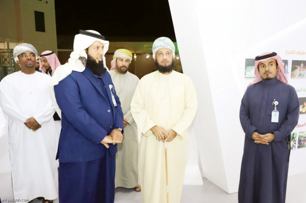 صورة التقطت أمس من زيارة الوفدين العماني والبحريني لجناح محافظة الخرج (المركز الإعلامي ـ الجنادرية)