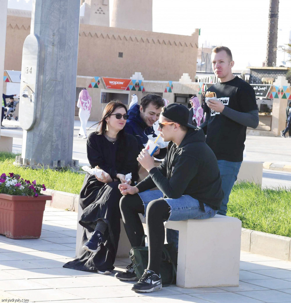 يجتذب مهرجان الجنادرية السعوديين والمقيمين الأجانب على حد سواء للاستمتاع بمعايشة التاريخ والتراث السعودي الممتد لعشرات السنين وفي الصورة التي التقطت أمس عائلة أجنبية تستريح في ساحة القرية التراثية بعد جولة في مرافق الجنادرية يتناولون وجبة سريعة (واس)