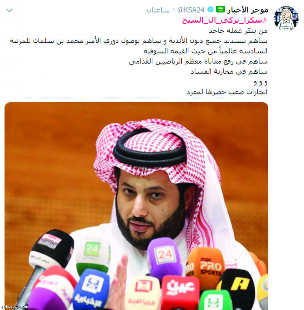 وعقب احتلال هاشتاق #أوامرملكية صدارة قائمة الترند السعودي، تصدَّر هاشتاق #شكراتركيآلالشيخ قائمة الأوسمة الرياضية التي أطلقها المغردون من داخل السعودية وخارجها، قبل أن يقتحم هاشتاق #عبدالعزيزبنتركيالفيصل قائمة الأكثر تداولًا في السعودية، ليدخل بعدها هاشتاق #هيئةالرياضة القائمة.
