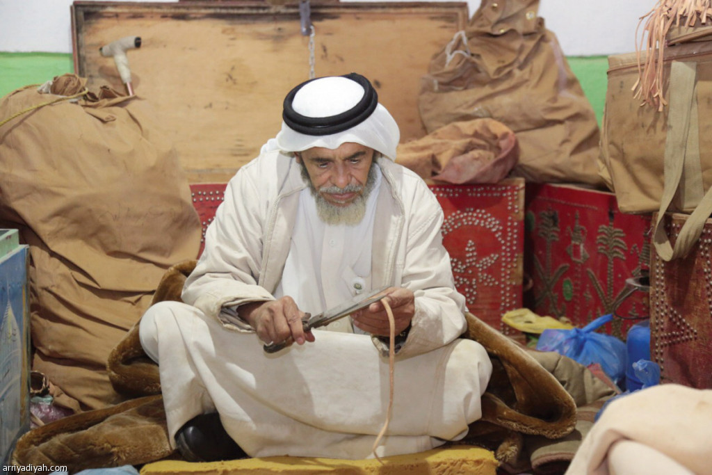 صورة التقطت أمس لمحمد سالم صانع الخراز يؤدي أعماله الحرفية (واس)