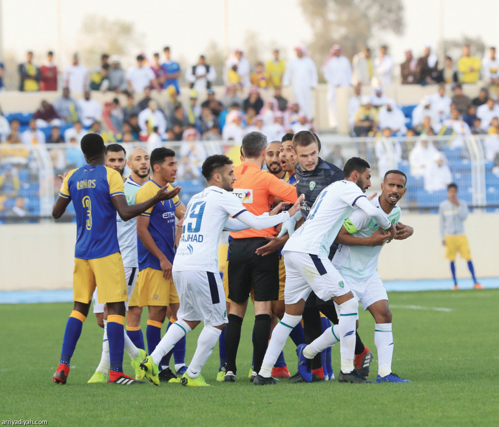شهدت مباراة الفتح والنصر احتجاجات متواصلة من لاعبي الفريقين على قرارات مالينكو الحكم الإسباني استمرت حتى بعد إطلاق صافرته.. وفي الصور التي التقطت أمس يظهر اللاعبون يحاصرون الحكم في أكثر من مرة اعتراضاً على قراراته تصوير: عيسى الدبيسي