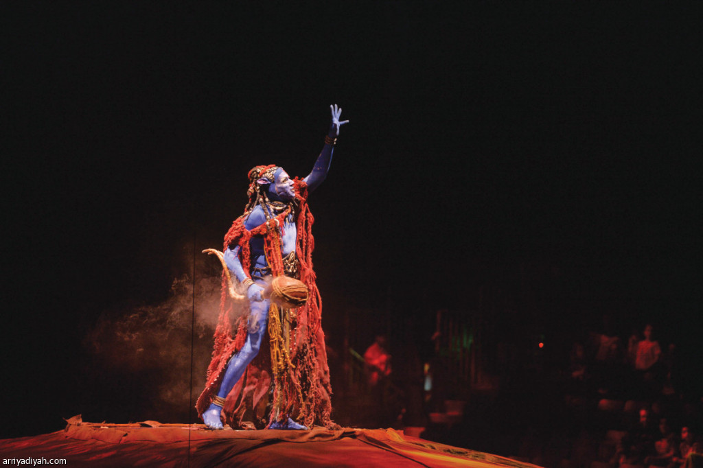صورة التقطت امس من فعاليات دو سوليه السيرك العالمي الشهير في اليوم قبل الأخير على ختام عروض "أفاتار" (المركز الإعلامي ـ اللجنة المنظمة)