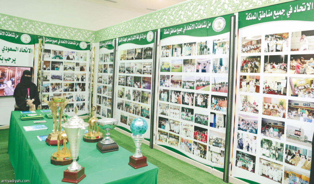 صورة التقطت أمس من الكؤوس المعروضة في جناح الاتحاد السعودي لكرة القدم في الجنادرية تصوير: بشير صالح