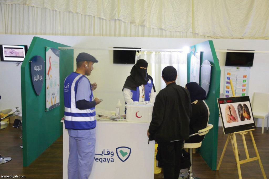 صورة التقطت أمس لمشاركين من المركز الوطني للوقاية يؤدون أعمالهم التوعوية للزوار