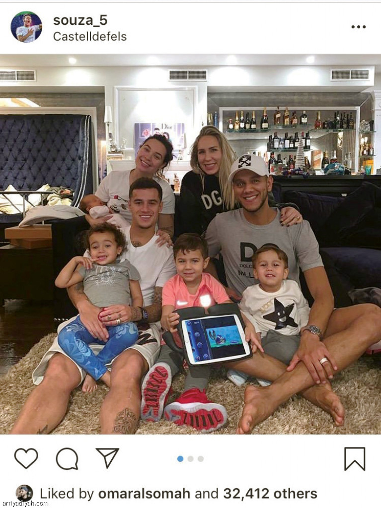 بث البرازيلي سوزا محترف فريق الأهلي الأول لكرة القدم عبر موقع التواصل الاجتماعي "إنستجرام" عدة صور برفقة ابن جلدته كوتينهو لاعب فريق برشلونة الإسباني لكرة القدم، إذ يقضي الثنائي إجازتهما الخاصة في مدينة برشلونة الإسبانية، ونالت الصور نحو 32 ألف إعجاب وأكثر من 500 تعليق من متابعي سوزا خلال 3 ساعات من بثها.