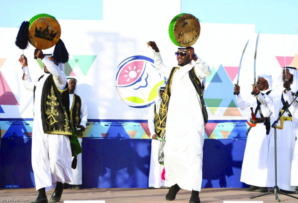 صورة التقطت أمس من مشاركة إحدى الفرق الشعبية في المهرجان (واس)